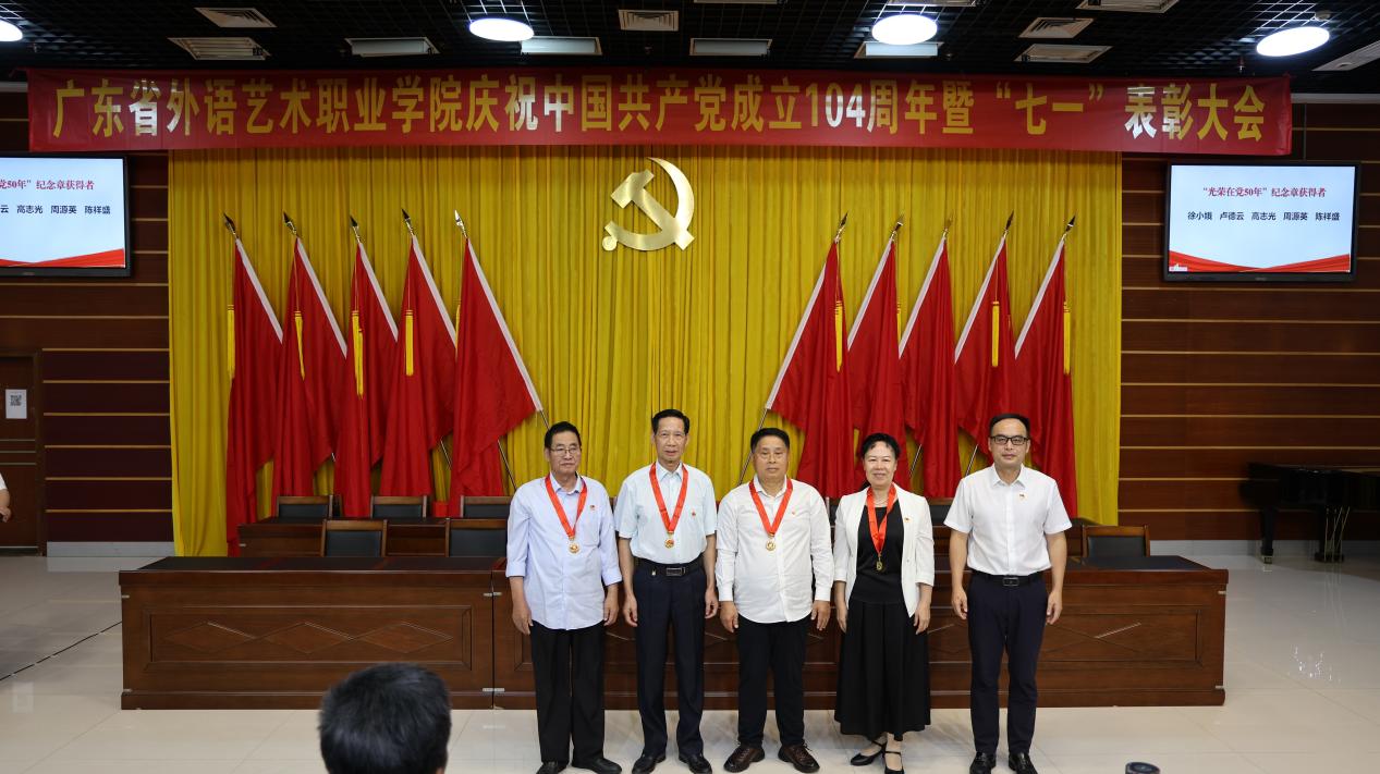 马栩生为“光荣在党50年”的退休党员颁发纪念章,感谢他们对学校教育事业作出的重要贡献。